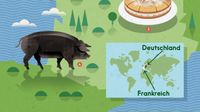 Kennst du die Geschichte vom KLEINEN PRINZEN 1 ? Geschrieben hat sie der französische Autor Antoine de Saint-Exupéry vor 80 Jahren. Im Elsass an der Grenze zu Deutschland gibt es schmucke FACHWERKHÄUSER 2 . Manche sind schon weihnachtlich geschmückt! Die TARTE TROPEZIENNE 3 ist ein herrlich cremiger Kuchen. Viele Bauern züchten SCHWARZE SCHWEINE 4 für besonders edlen Schinken.