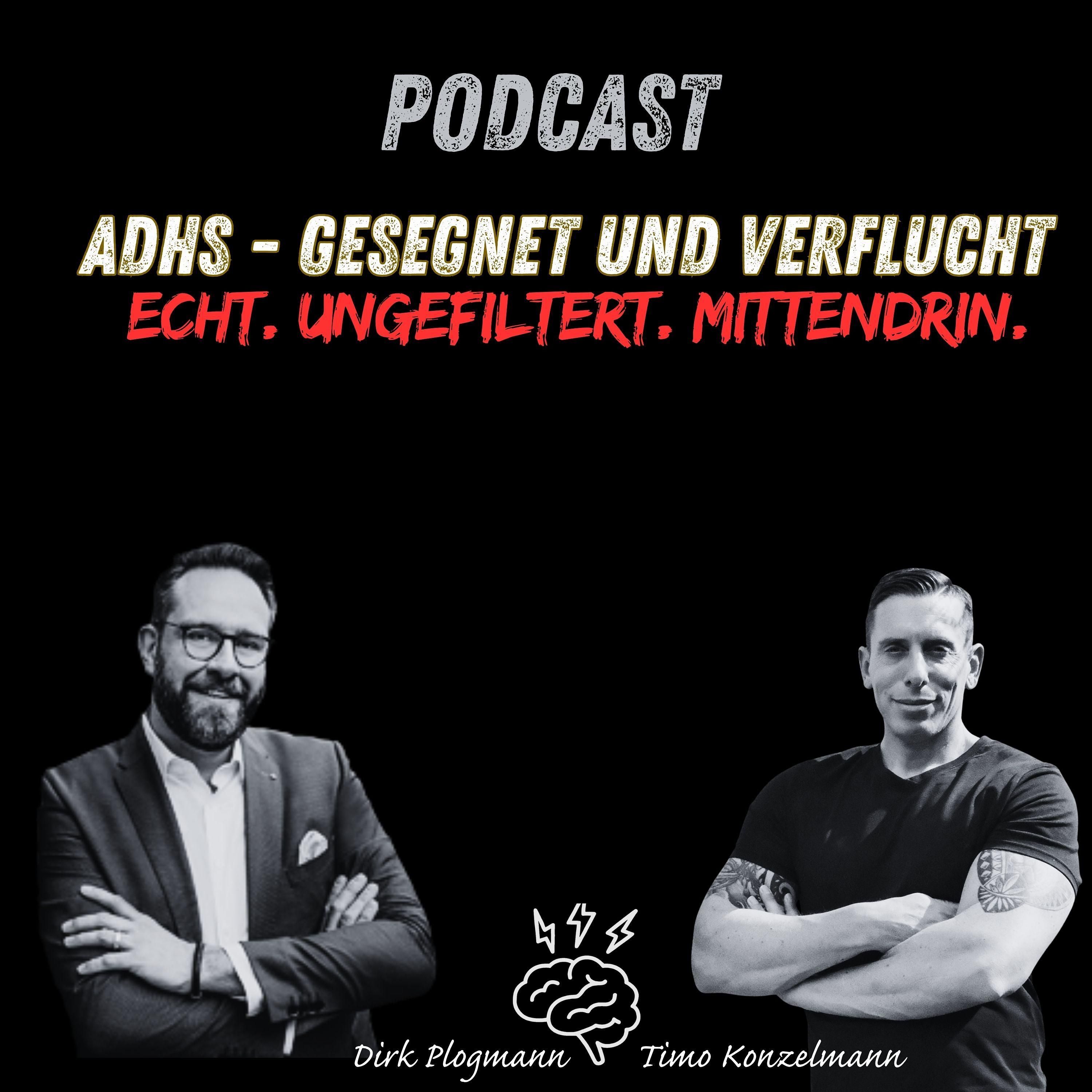 ADHS – gesegnet & verflucht ist der Podcast für alle, deren Gehirn mehr Tabs offen hat als der Browser. Wir schauen jede Woche auf das Leben, wie es wirklich ist. Ungefiltert, ehrlich, manchmal chaotisch, oft komisch und immer mitten drin.Wir sprechen über kleine Siege, große Fragezeichen, Dopamin-Momente, Missgeschicke, Fokus-Fails, Ideenfeuerwerke und Situationen, die man nicht planen kann. Unser Wochenrückblick erzählt echte Geschichten aus dem Alltag mit ADHS und einer guten Portion Selbstironie. Wenn du lachen willst, dich wiedererkennen möchtest und keine perfekten Menschen mit perfekten Routinen brauchst, sondern echte Stimmen, ehrliche Gedanken und Kopfkino, dann bist du hier richtig. Zwei Menschen, zwei Gehirne, tausend Gedanken und ein Mikrofon. Willkommen in unserem wöchentlichen ADHS-Realitätscheck. Kaffee bereit? Fokus eingestellt? Egal. Los geht’s. Dein Kontakt zu uns: Timo (Instagram) (Blog) (Youtube) Dirk (Instagram) (Webseite)
