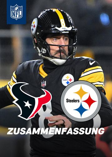 Houston Texans @ Pittsburgh Steelers | Dienstag, 13.1., ab 01:45 Uhr (Kickoff: 02:00 Uhr) | Jana Wosnitza (Moderation) Mika Kaul (Kommentatorin) Jan Weinreich (Experte) |