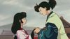 Die schwarze Priesterin stiftet zwei junge Tempeldienerinnen zum Kampf gegen Inuyasha und seine Freunde an.