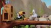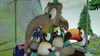 Jonathan und Kurti gelingt es, mit einem Bauteil ihre Roller zu frisieren. Nun sind die Fahrzeuge so schnell, dass die beiden damit über den Rand des Kraters krachen und am Ufer landen. Bei der Rettung helfen alle Tiere und die Bahn mit.